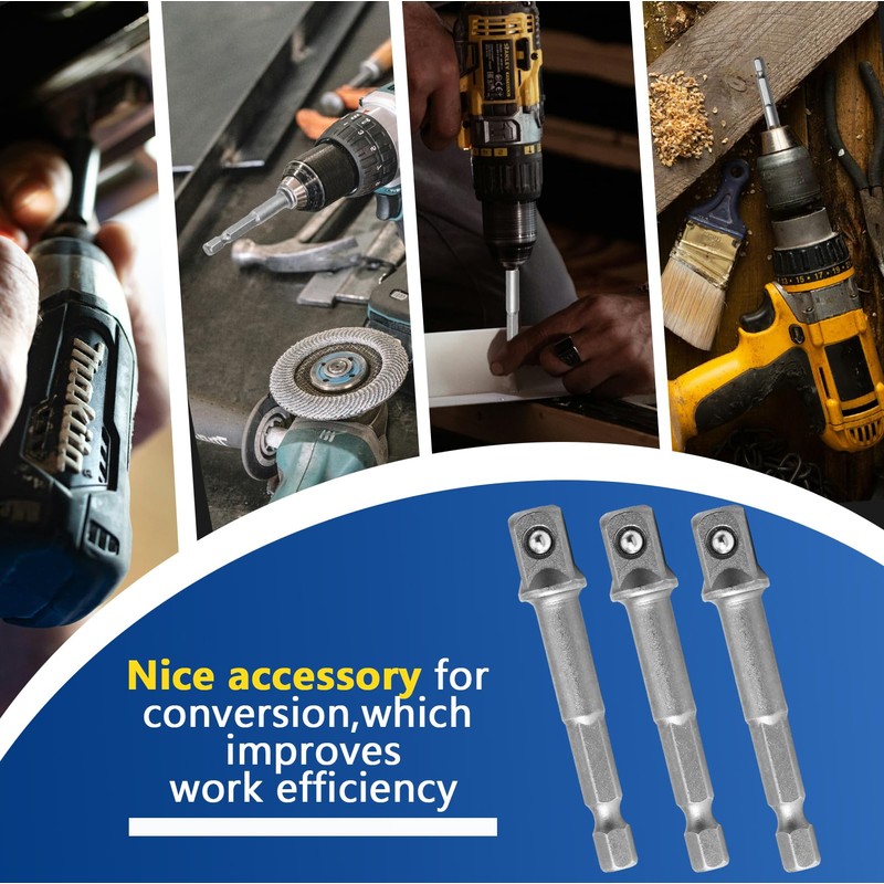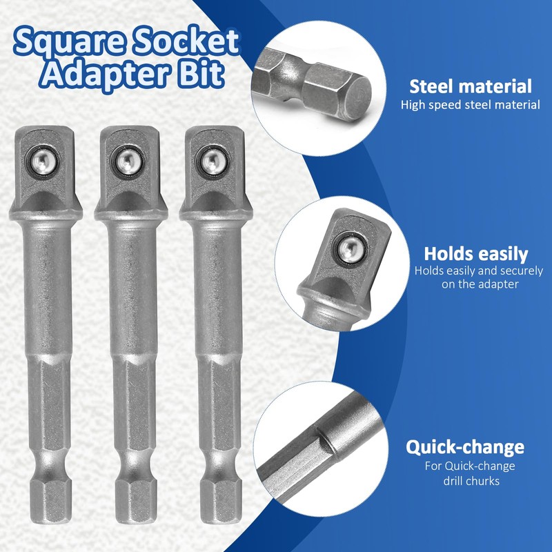 - Efficient Dual Conversion -- Effortlessly converts hexagonal sizes to square head sizes to streamline your socket installations and boost your work efficiency. 1/4" (6.35mm) hex shank to 3/8" (9.5mm) square socket.
