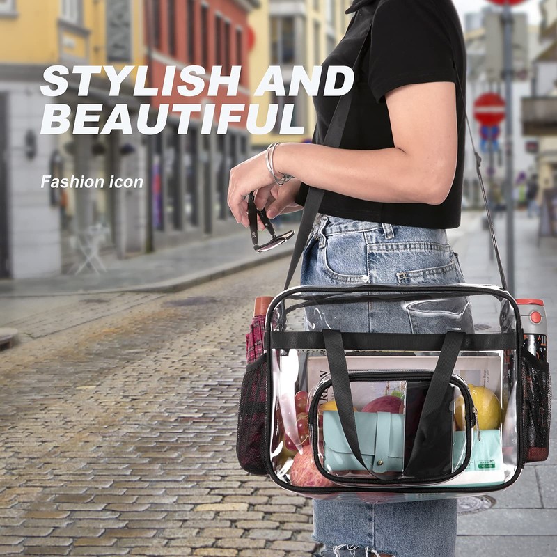 - 【Adjustable Shoulder Strap】Except two hand straps, this large clear bag also has an adjustable length shoulder strap.
