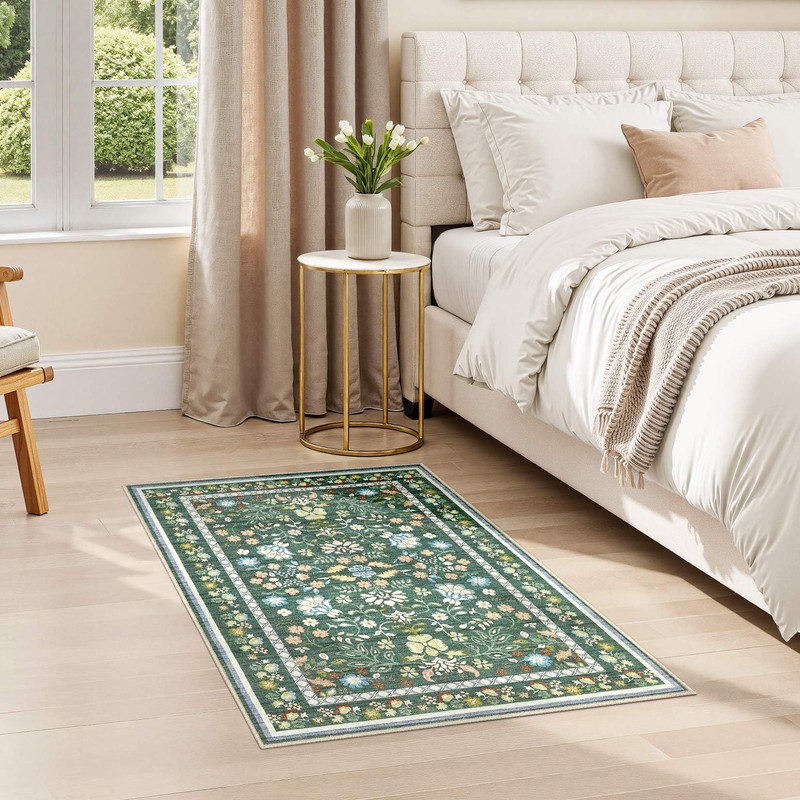 - Floral Design: This washable rug features a unique floral design that combines the boho and vintage styles, adding more warmth and cozy to your home. Perfect for high-foot traffic and areas more prone to life’s unpredictable messes from kid or pet activity