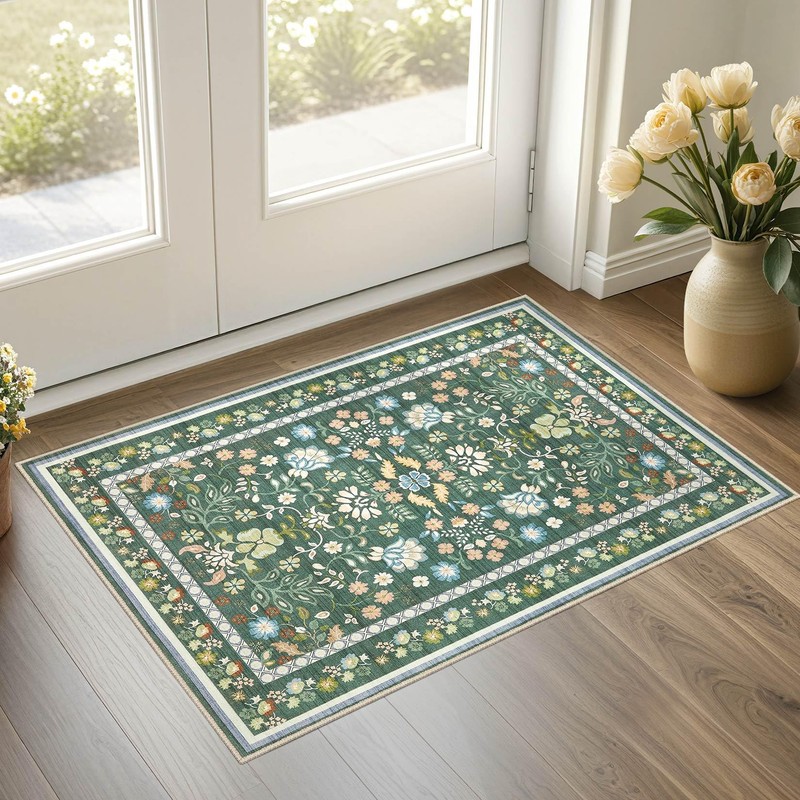 UERMEI Door Mat Entrance Rug: 2x3 Washable Area Rug Boho Floral Small Rug - Non-Slip Low Pile Throw Indoor Carpet for Entryway Kitchen Front Door Bathroom Entry Kids Room - Green