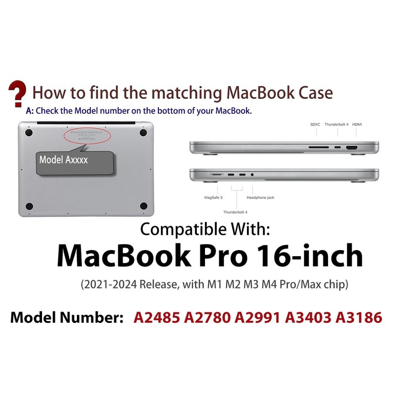 **This case is only compatible with 2021-2024 NEWEST MacBoook Pro 16-inch with Model number: A3403 A3186 A2991 A2780 A2485