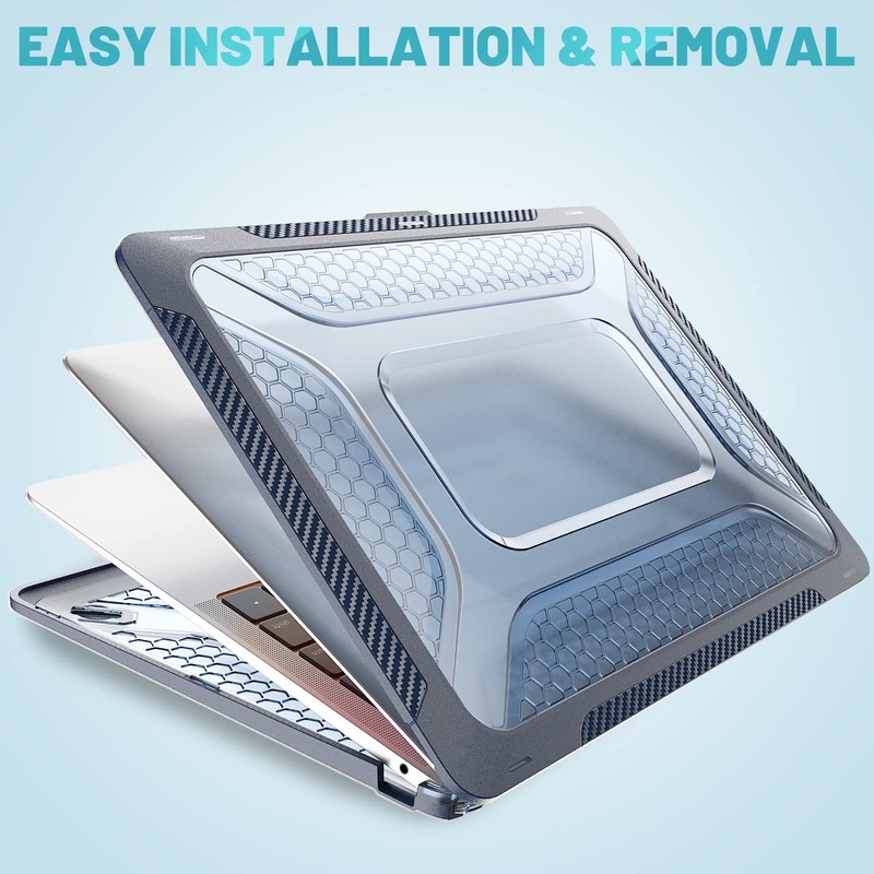 UESWILL Foldable Kickstand Case for MacBook Air 13 inch Case 2021-2018 Model A2337 (M1) A2179 A1932, with Retina Display Touch ID, Honeycomb Full Protection Heavy Duty Cover, Navy Blue