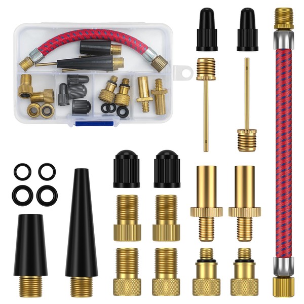 - Kit includes: adapter for bicycle valve kit contains 8 bicycle valve adapters for DV, SV and AV, 2 ball needles, 4 bicycle valve caps, 1 pump adapter, 2 cone adapters, 4 sealing rings.