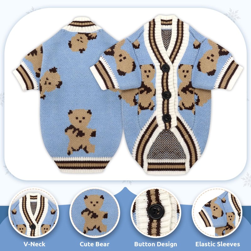 - Perfect Gifts for Christmas Dog Sweater - Blue is used as the base color of this small dog sweatshirt, and lifelike bear pattern decorates on the whole sweater, lovely and fashionable. When wearing this stylish dog cardigan sweater go to a party, your furry friend will attract lots of attention, and get countless compliments