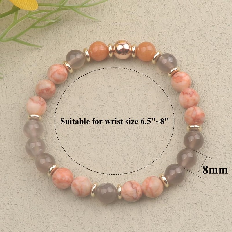 - Natural stone stretch bracelet: Our stone bracelets are made of 8 mm natural stone, are carefully polished and connected with an elastic cord. The bracelet is about 18.5 cm long and stretches so it fits most wrists. It is very comfortable to wear. Completely skin-friendly on sensitive skin.