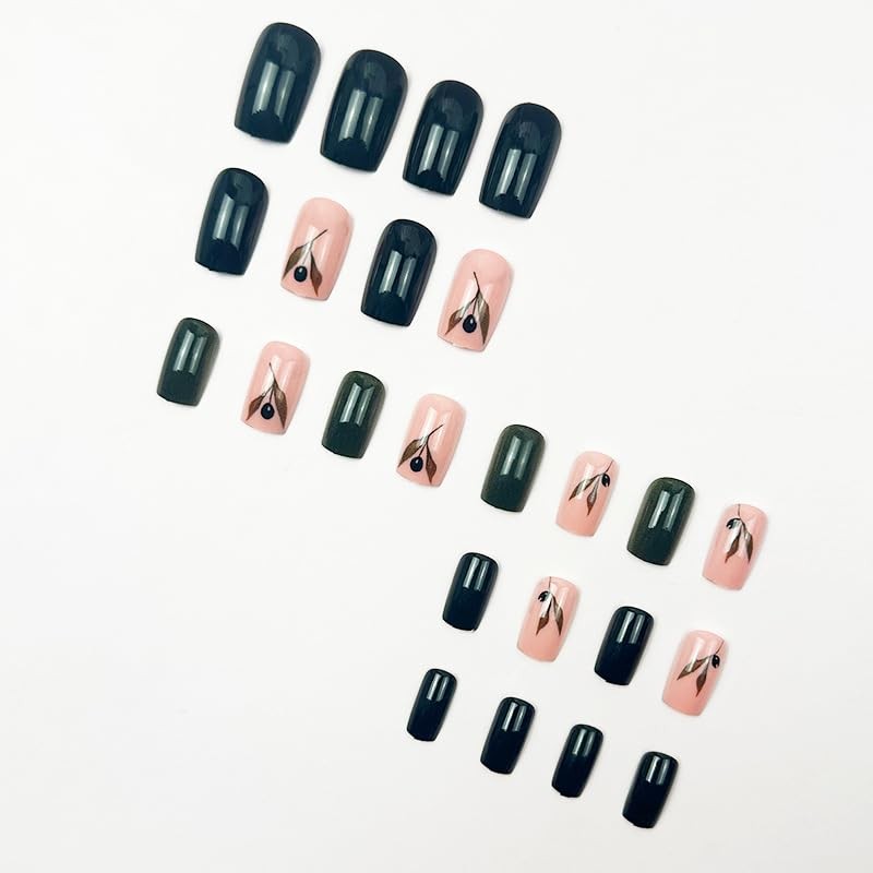 - Easy to Use:green fake nails with glue sticker can get your favorite manicure in just 5 minutes without waiting at the nail salon. Some simple steps allow you to get the same impressive professional effect at home