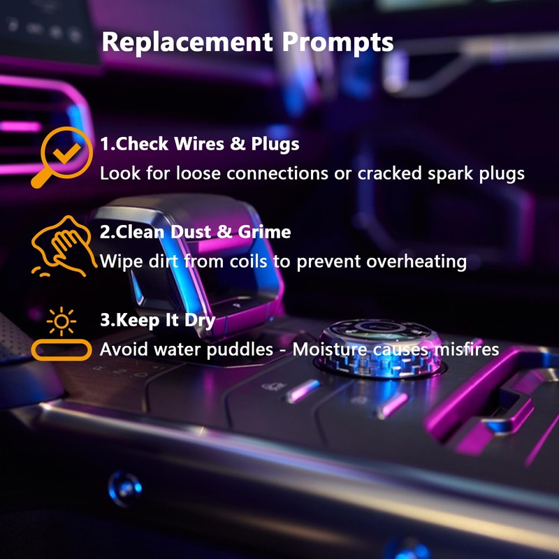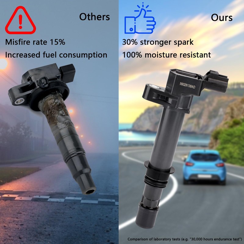 - Resolves common ignition system issues: Our ignition Coils effectively address common problems such as backfiring, misfires, stalling, engine jerking, and poor idling. They also enhance power output to optimize overall engine performance. Additionally, these coils monitor check engine lights for circuit malfunctions and severe stalling.
