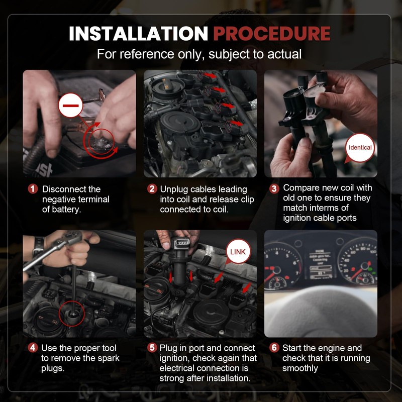 - Ignition Coil: German-imported high-purity copper windings, silicon steel core and high temperature resistant epoxy resin and other high quality materials provide efficient power transmission,anti-oxidation and corrosion resistance to ensure stable high voltage output from coil pack,reduce ignition failure.