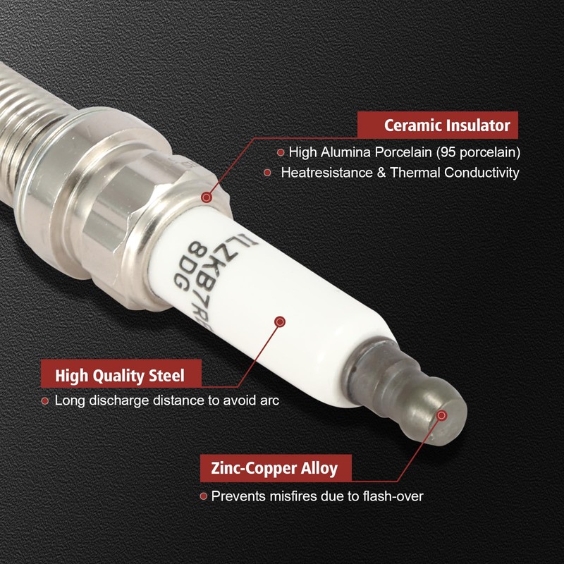- Iridium Spark Plug:1)center electrode adopts 360°continuous laser welding and cold extrusion process to produce more concentrated and stronger sparks;2)Nickel content up to 90%,high resistance to ablation and rust,life time up to 60,000-100,000 miles;3)High alumina ceramics(95 ceramic),high temperature resistance and good insulation;4)Precise ignition,optimized MPG,reduced carbon deposition,stable performance