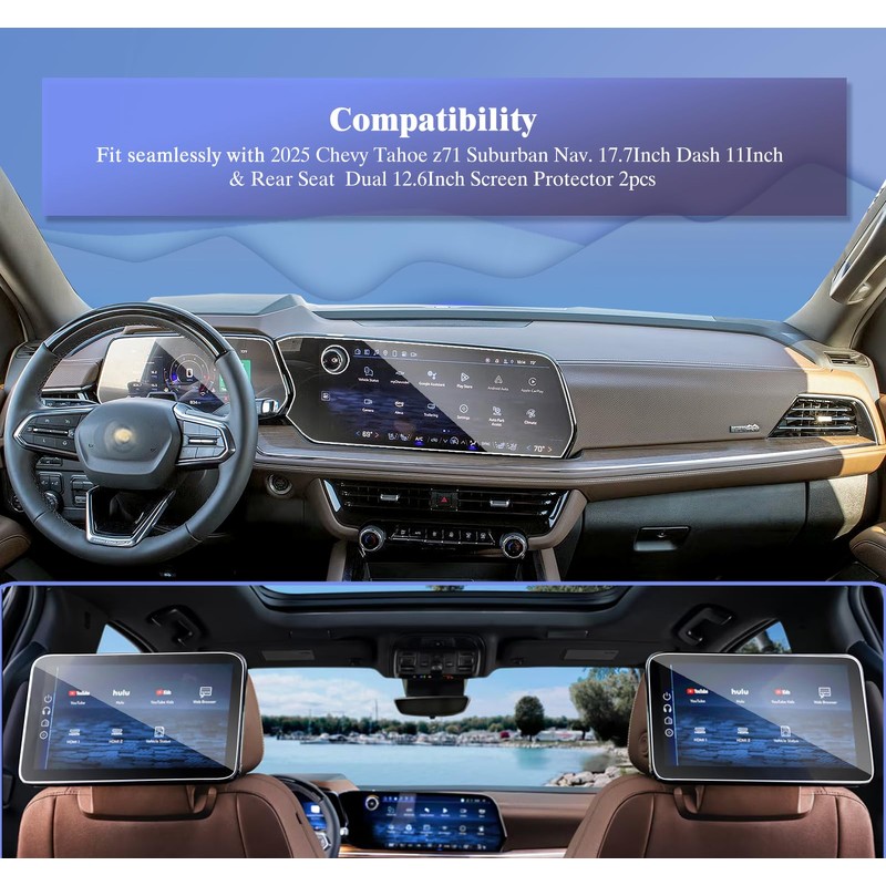 - 【Customized Fit】2025 tahoe z71 screen protector 2025 tahoe screen protector 2025 suburban screen protector 2025 suburban z71 screen protector 2025 tahoe suburban screen protector are carefully designed to fit 2025 Suburban & Tahoe 11'' + 17.7' & Dual 12.6Inch Rear-Seat TV Entertainment perfectly, providing a seamless, precise fit for your device.