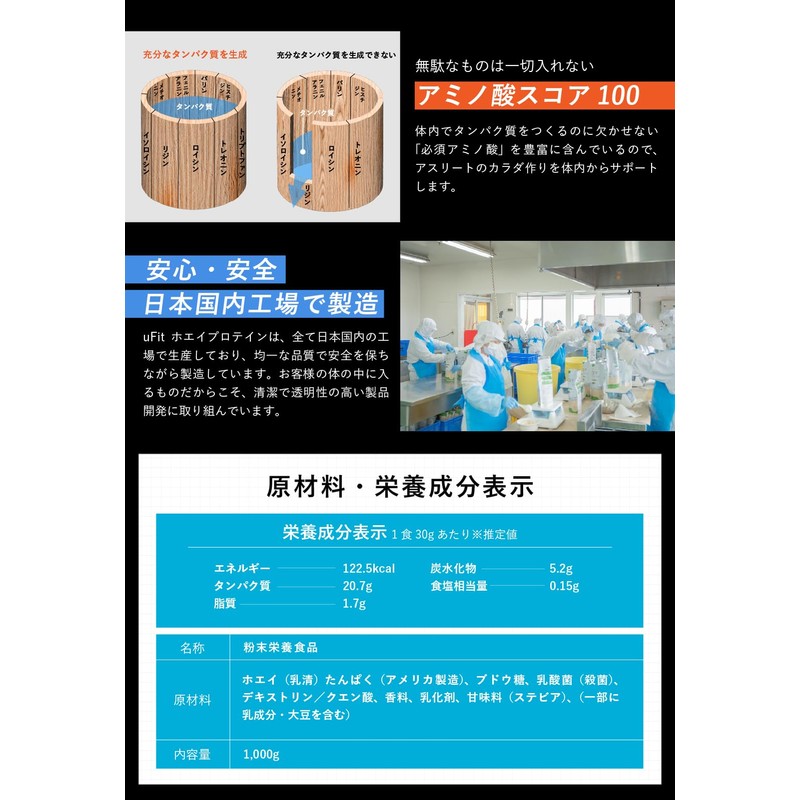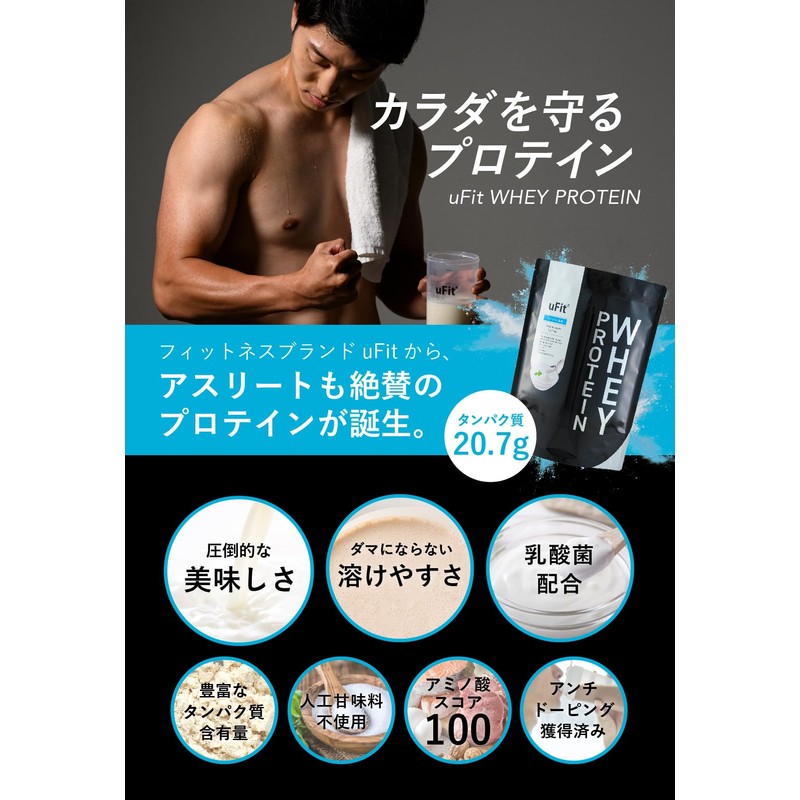 uFit ホエイプロテイン 無添加 人工甘味料不使用 元プロ卓球選手水谷隼愛飲 ヨーグルト風味 乳酸菌配合 WPCプロテイン 国内製造 1kg