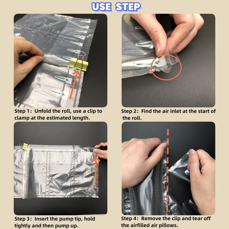 • 【Package Included】: 1 roll of compact air cushion film and 1 hand air pump. You can use an hand air pump or air compression to blow up the air pouch. Air pocket size: 3.54 inches x 7.87 inches, length 88.6 feet