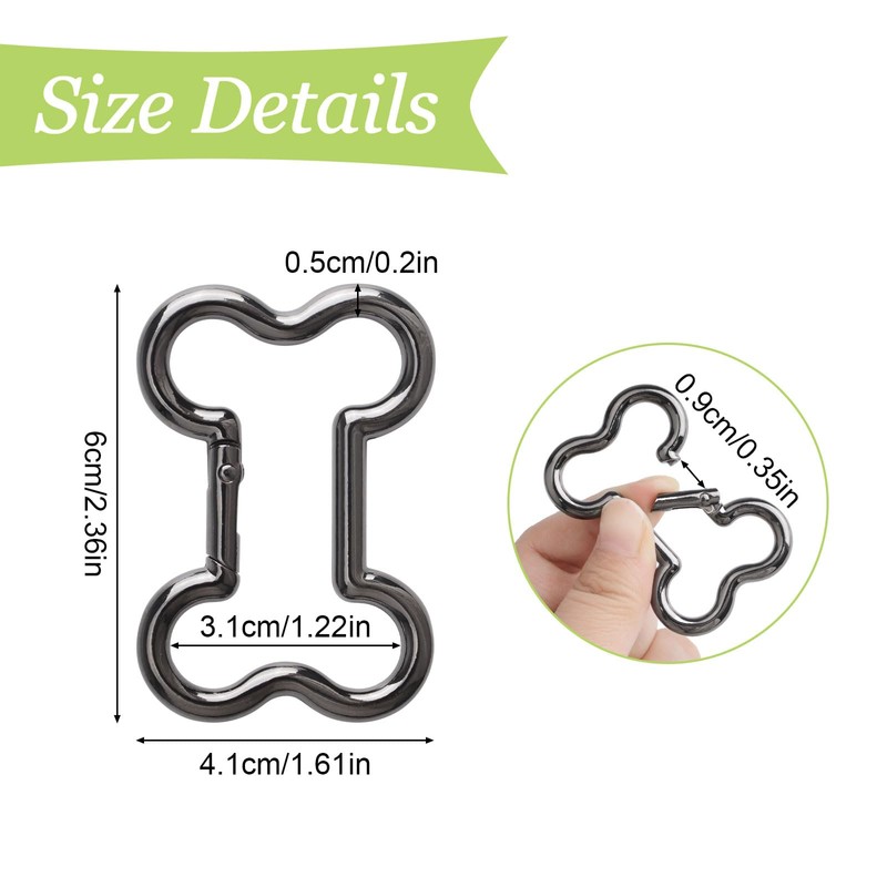 The spring carabiner clips are made in the shape of a beautiful bone and coated by updated electroplating technology, look very beautiful and not easy to fade.