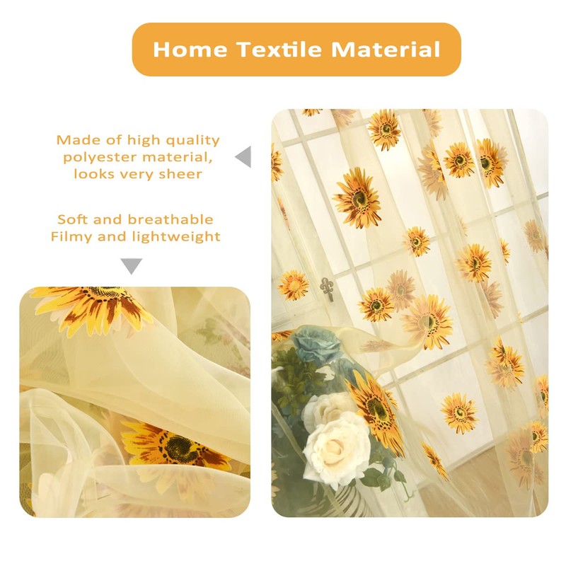 - 【Sunflower Sheer Curtain】Sunflower pattern yellow curtain is classy and delicate, Make You a Forest Themed, Jungle Themed, Woodland Themed, Rural Themed Room. Perfect for Sunroom, Living Room, Bedroom, Dining Room, Balcony, Yard, School Dorm, Door, Kids Room etc.