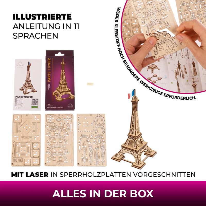 - Ugears Presents the Holzstadt-Modelle collection 3D wooden puzzle for adults. One of these 3D puzzles is the Paris Tower - a real model kit of the Eiffel Tower in Paris.