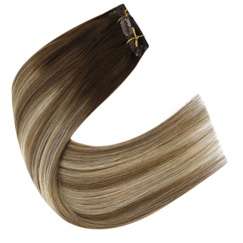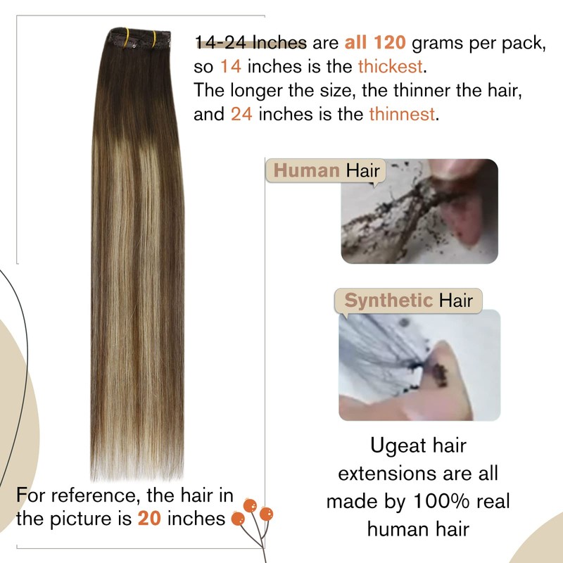 - Details★#4/6/613 Balayage color with 120G (20G clips and 100G hair) clip in hair extensions.Incredibly easy to apply to every position you want.