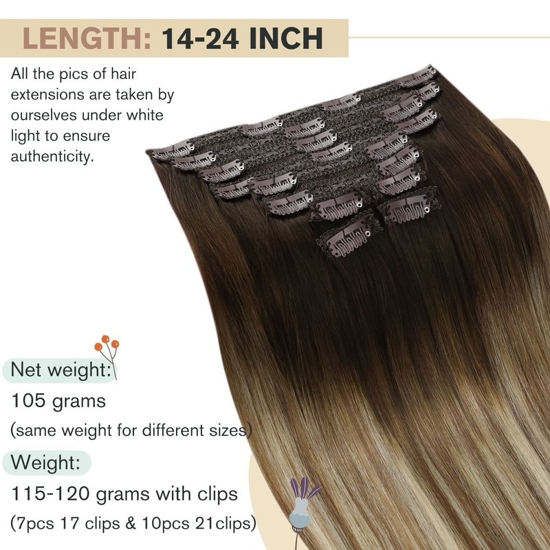 - Hair Extensions Clip in Human Hair★ Won't shed or knot with carefully use because they are made of 100% remy human hair. And soft and smooth texture of clip in human hair extensions will give you more comfort.