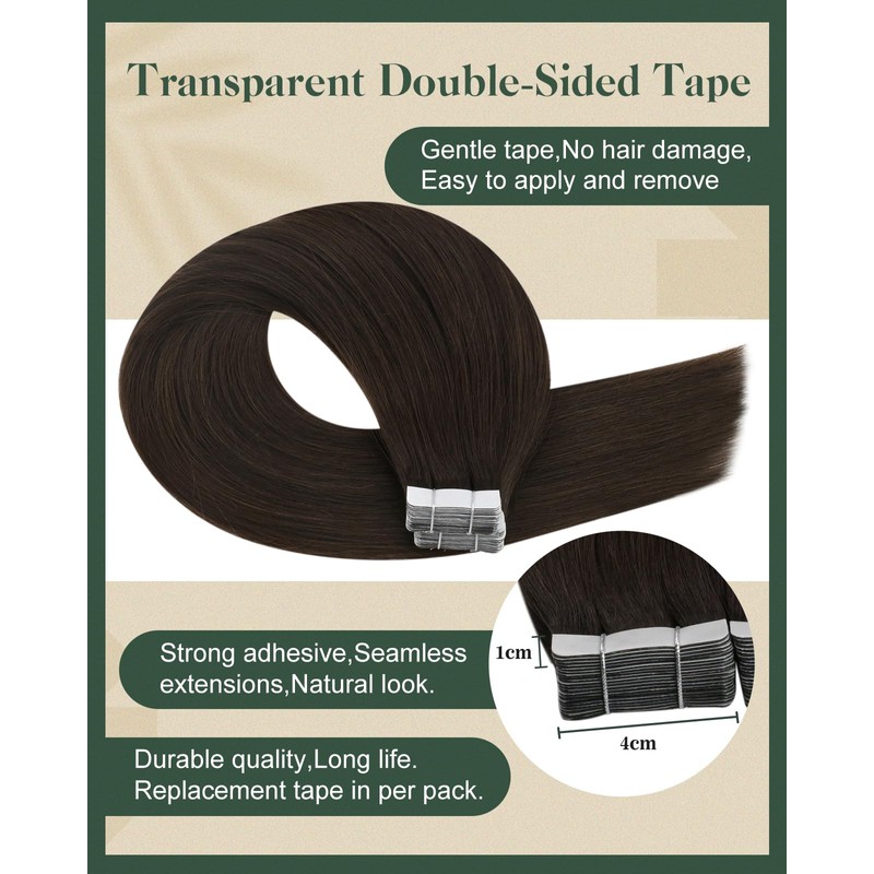 Ugeat Ugeat Tape in Hair Extensions Human Hair Brown Seamless Human Hair Tape in Extensions Darkest Brown Hair Extensions for Women Invisible Lightweight for All-day Wear 14 Inch 20pcs 40G