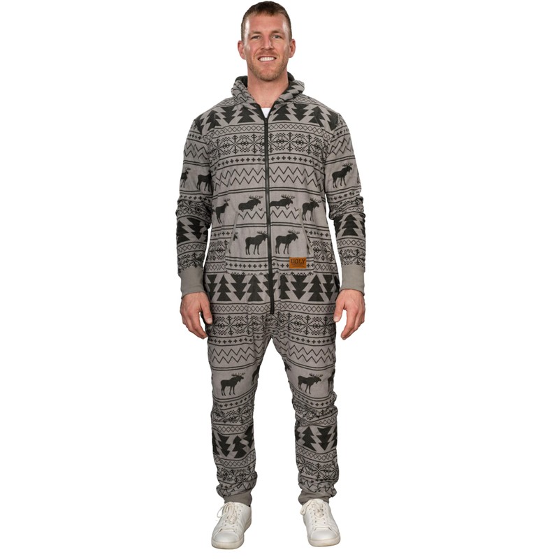 UglyChristmasSweater Style Fair Isle Jumpsuit Cozy Adult Union Suit Pajamas for Mens and Womens