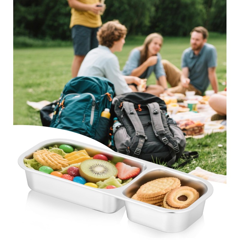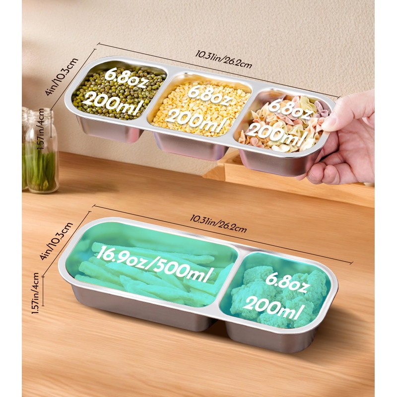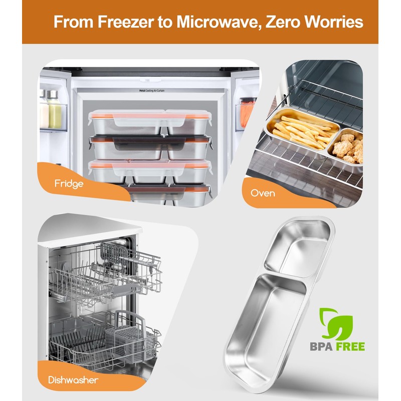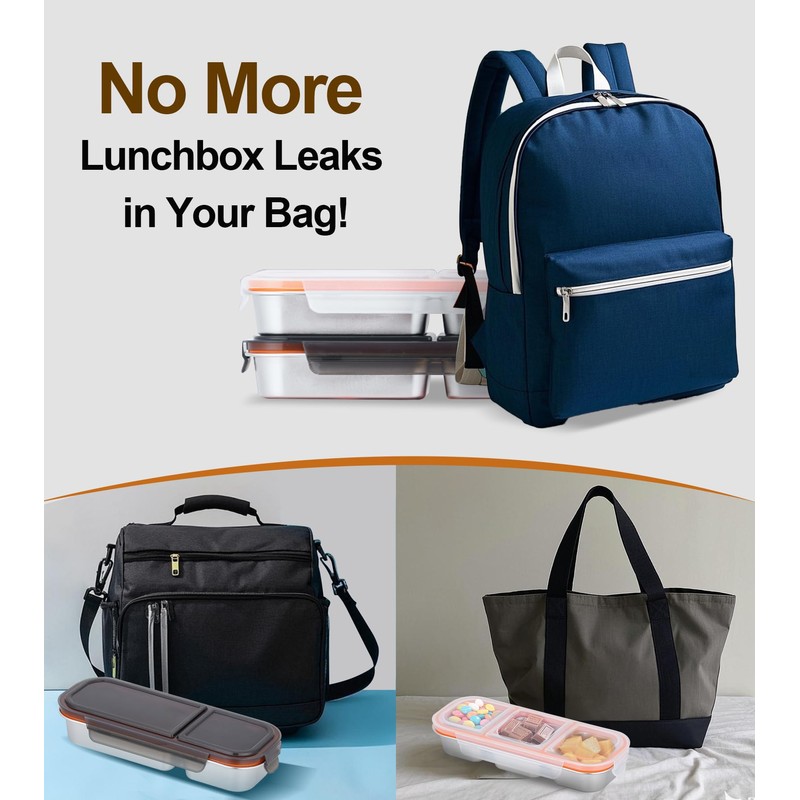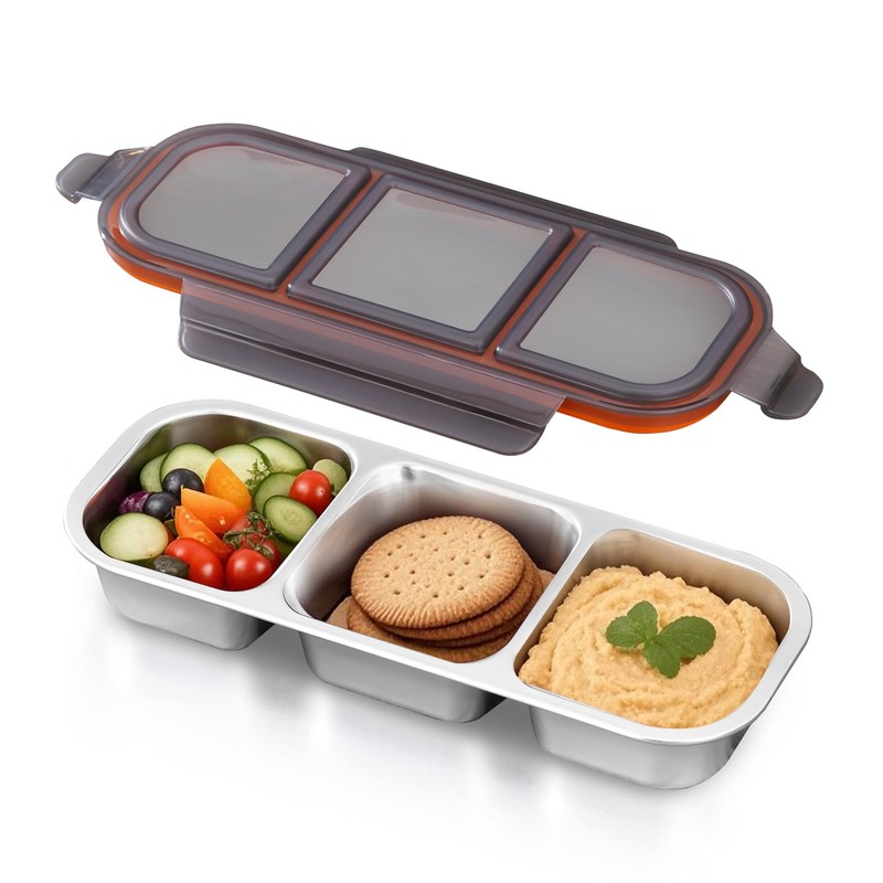 Ugotit Stainless Steel Snack Containers, 3 Compartments Lunch Container, Divided Food Storage Containers, Airtight Lids, Reusable (Black)