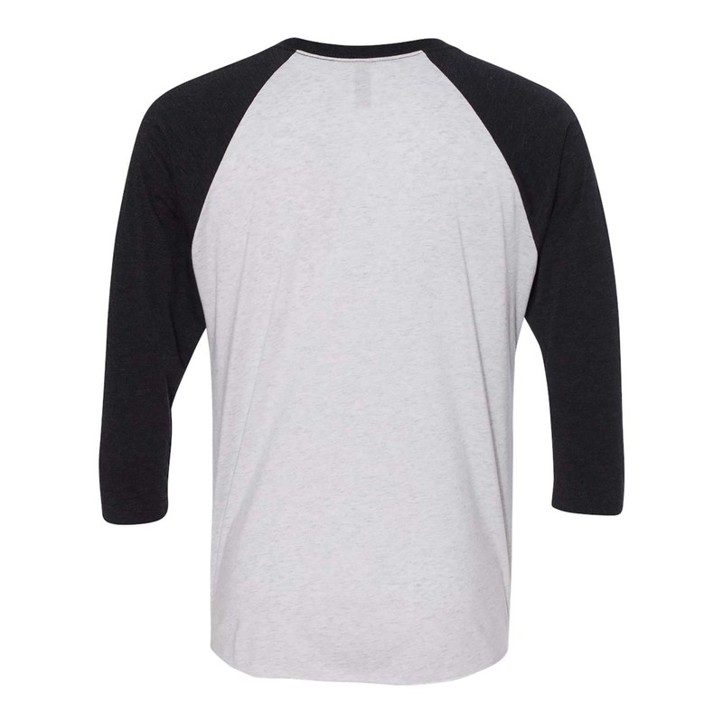 • SOFT FABRICS Printed on Unisex Tri-Blend 3/4 Sleeve Baseball Raglan Tee - Fabric laundered, 4.3 oz., 50/25/25 polyester/combed ringspun cotton/rayon, Set-in collar, 1x1 triblend baby rib set-in collar, Body color listed first, Sleeve and neck color listed second