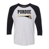 UGP Campus Apparel AR1166 - Purdue Boilermakers Varsity Script Helmet 3/4-Sleeve Raglan - Small - HTR White/VTG Black