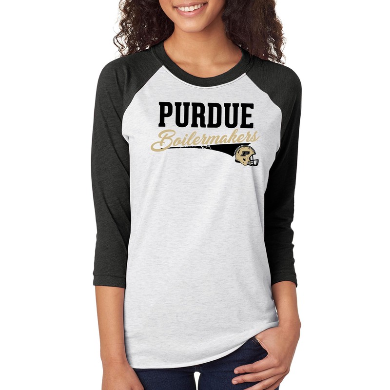 Show off your style in this great Purdue Boilermakers Varsity Script Helmet Raglan T Shirt! Underground Printing uses cutting edge technology to create the highest quality t shirts out there! We have thousands of designs! Check out our store for great items to wear around campus, at home, or on a night out on the town! We have a great selection ranging from official collegiate printed t shirts to funny novelty t shirts.