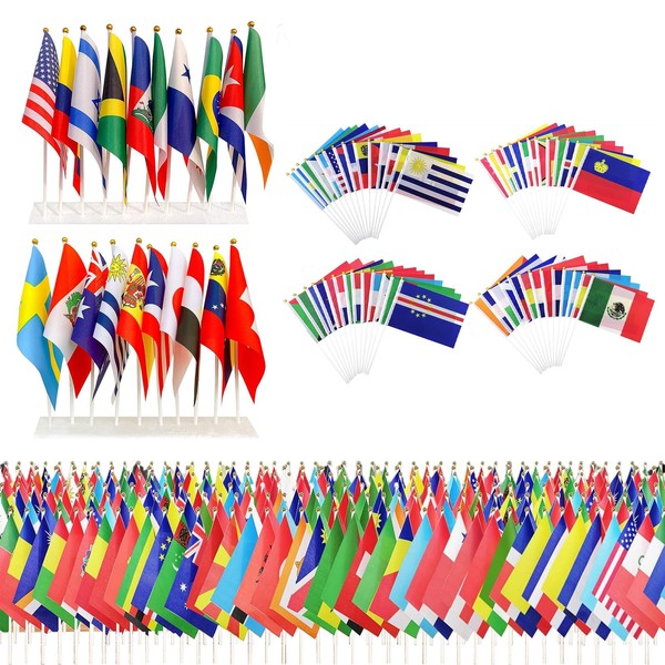 UGrandF 200 Pack World Country Flags on Sticks, Mini Handheld National Flags - Includes Most Countries, 8.2 x 5.5 Inches