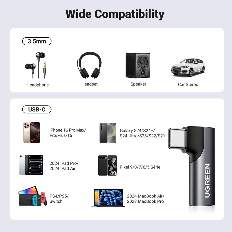 - 【Stylish and Durable】: UGREEN USB C-Aux headphone adapter adopts corrosion resistant aluminum alloy case. In addition to improving durability, silver does not feel discomfort because it looks good with many devices. Note: It can be used with smartphone cases less than 0.1 inch (3 mm) thick, and 0.1 inch (3 mm) or more, there is a risk of contact fail