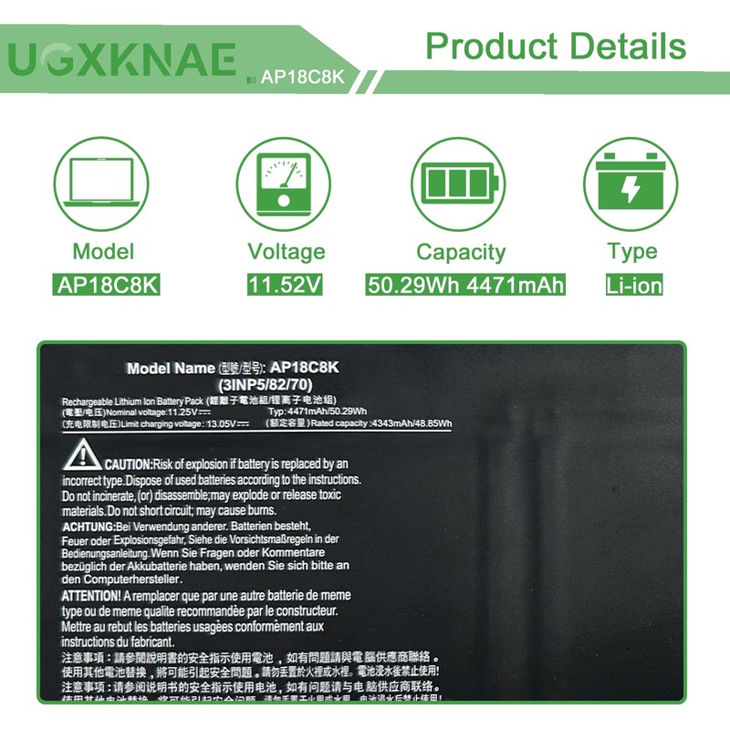 UGXKNAE AP18C8K Laptop Battery for Acer Swift 3 SF314-42 SF314-57 SF314-58 SF314-59 Aspire 5 A514-52 A514-54 A514-54G A515-56 A515-56T Aspire 7 A715-42G Spin 3 SP314-21N SP314-54N Series HSTNN-DB9Q