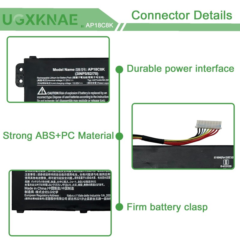 • Compatible Laptop Models: Replacement for Acer Swift 3 SF314-42 SF314-57 SF314-57G SF314-58 SF314-58G SF314-59 Series laptop; for Acer Aspire 5 A514-54 A514-54GSeries laptop;for Acer Aspire 5 A514-52 A514-52K A514-52K-36GL Series laptop; for Acer Aspire 5 A515-56 A515-56G A515-56S A515-56T Series laptop;for Acer Aspire 7 A715-42G Series laptop; for Acer Chromebook 314 314-C933 314-C933T Series laptop; for Acer Chromebook 315 CB315-3H CB315-3HT Series laptop;for Acer TravelMate P2 TMP215-52 TMP215-52G TMP215-53 TPM215-53G Series laptop