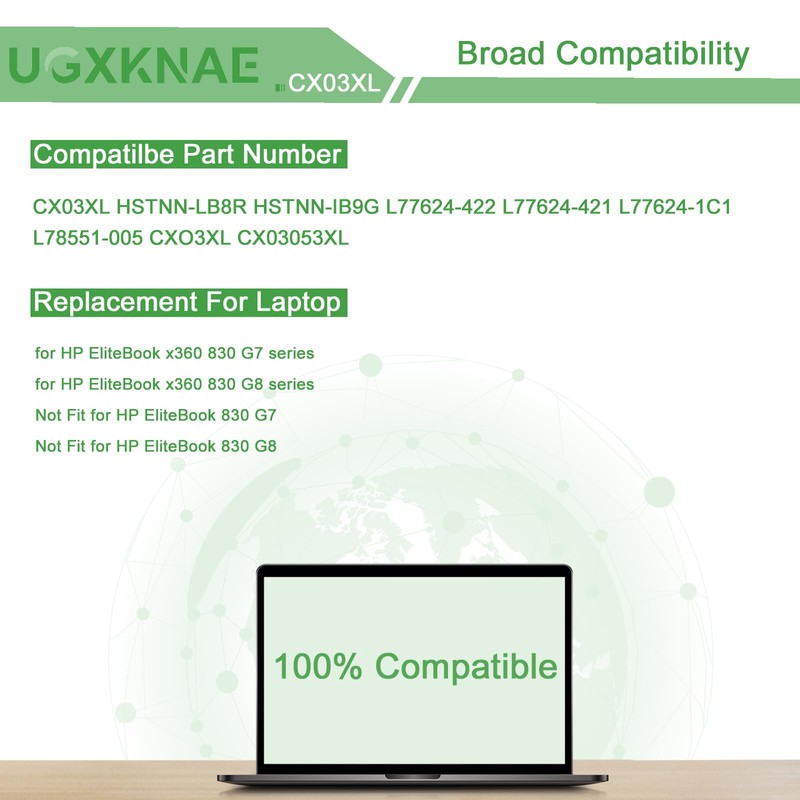 • Compatible Laptop Models: Replacement for HP EliteBook X360 830 G7 Series Notebook; for HP EliteBook X360 830 G8 Series Notebook .( Important Note: The CX03XL battery Not Fit for HP EliteBook 830 G7 and EliteBook 830 G8,Please check the model you need before purchasing.)