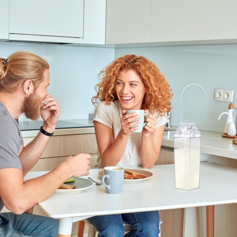 These milk carton water bottles are environmentally friendly, as they are made from recycled materials and can be recycled again once they are no longer in use. Cute shape design make drinking water a little more fun, just enjoy life healthily with our clear water bottle.