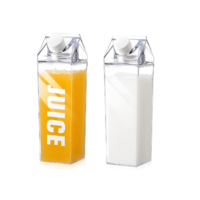 - Unique Shape Design: these water bottles have a unique and eye-catching design that is sure to stand out. The milk carton shape adds a fun and playful touch to your hydration routine, and the transparent color of this bottle make it can show the drinks color and that sure to catch people's attention. Our milk water bottle is great gift for all occasions and kids of all ages. Ideal choice for birthday, New Year, Christmas or any other occasions for kids.