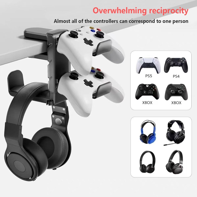 - 3-in-1 Design: this under desk hanger stand features a 360 degree rotating hook for headphone and 2 detachable holder to hold 2 game controllers simultaneously. It is designed to maximize your gaming desk space and keep everything you need within easy reach.