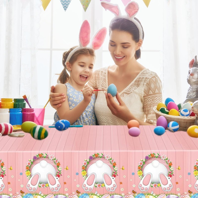 - Spring Easter Theme Design: our Easter party tablecloths are printed with vibrant colorful Easter eggs, playful bunny tails, and cheerful butterfly, set against a bright background that captures the joyful essence of spring. This delightful design brings a lively and heartwarming atmosphere to your dining area, turning every meal into an Easter celebration