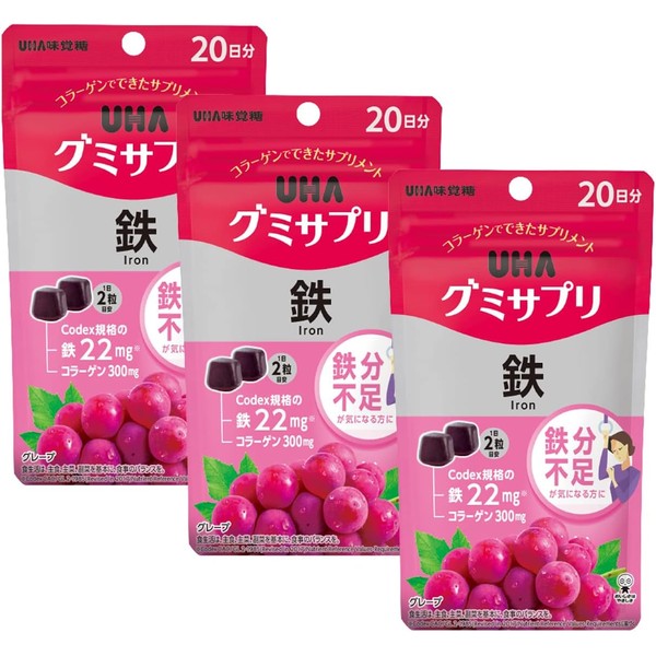 UHA Gummy Supplements [Bulk Purchase] Gummy Supplements Iron 20-day supply (40 tablets) Grape flavor 3-pack (60-day supply)