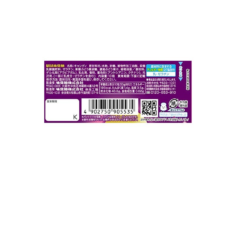 UHA Mikakuto Puccho Grape Sticks, 10 Tablets x 10 Packs