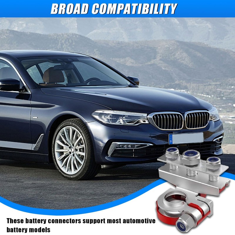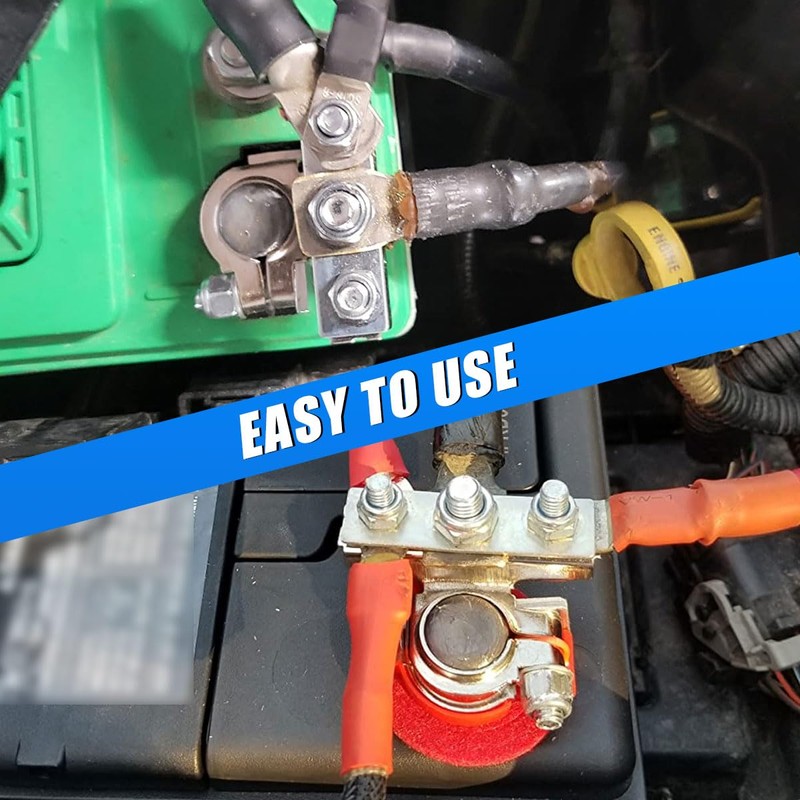 • 【Practical Functions】: The heavy-duty battery terminal minimizes voltage distortion and transmission loss, ensuring stable current flow. Additionally, its unique three-bolt copper plate fixing structure allows easy replacement of old or corroded terminals and can connect multiple cables simultaneously, facilitating wire organization or adding extra vehicle accessories.