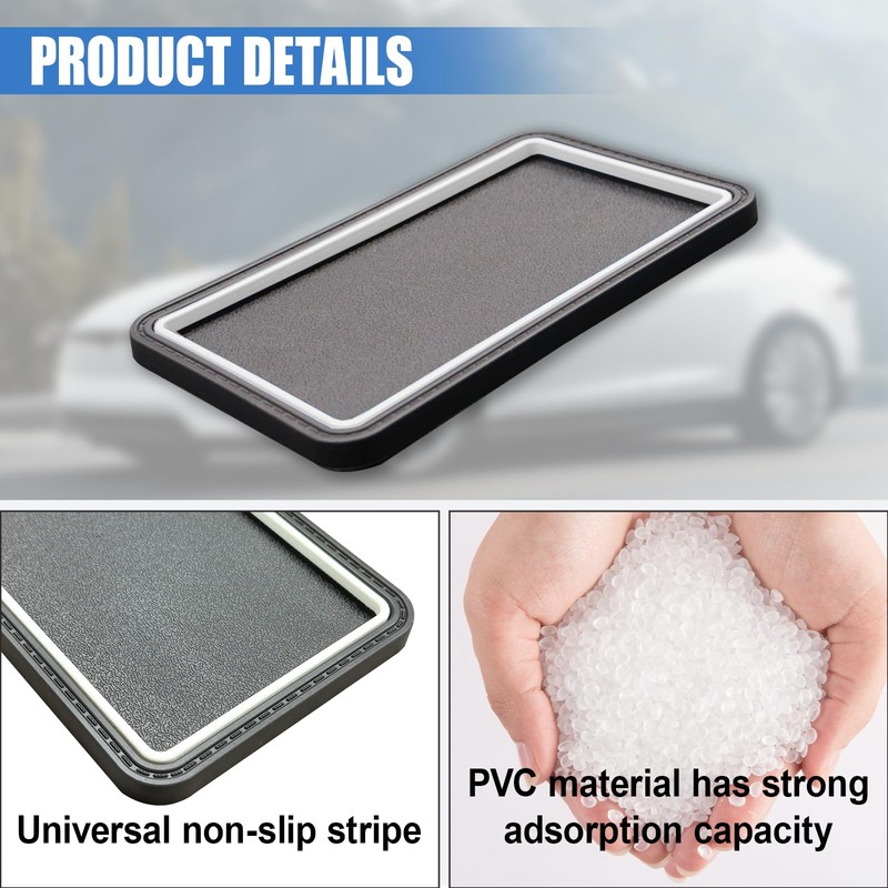 This car dashboard anti-slip mat, made of high-quality PVC material with strong adhesion, provides a convenient and secure in-car item placement experience.