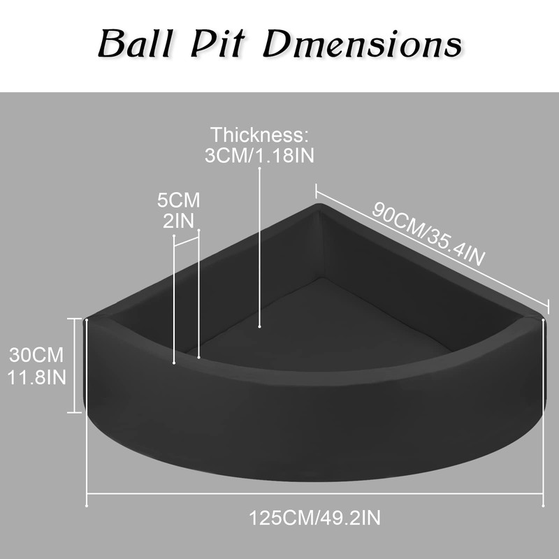 UHAPPYEE Ball Pit Black, Sector Foam Ball Pits for Toddlers, Corner Ball Pit Pool Playpen Foldable & Portable Soft Ball Pool 35.4”x 11.8” (Balls not Included)”