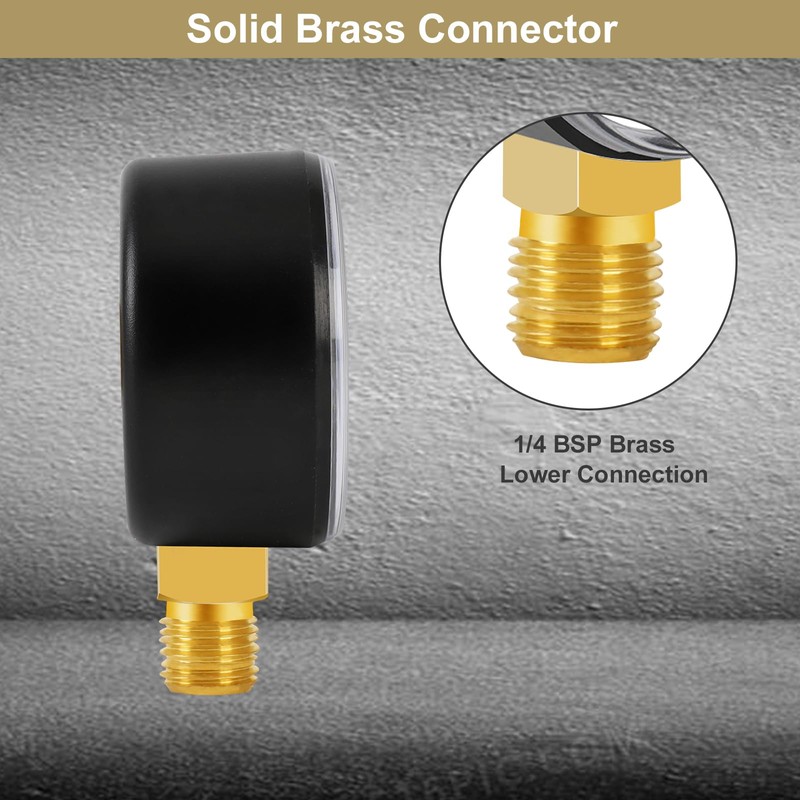 - 1/4" Connector: With a 1/4" BSP brass connector, this pressure gauge is extremely easy to install. The connection is stable and reliable, which ensures long-lasting use.