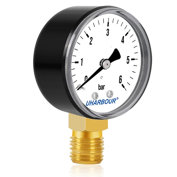 UHARBOUR Pressure Gauge Water 0-6 Bar, Pressure Gauge 1/4 Inch, Pressure Gauge Compressed Air Lower Bracket, Compressed Air Pressure Gauge 1/4 BSP Brass Connection