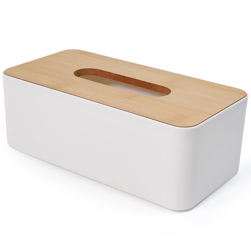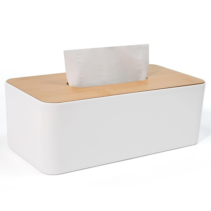 - Bamboo tissue box with lid: the main body of the rectangular tissue box is made of sturdy, drop-proof and durable plastic; the lid is made of natural bamboo with natural warm texture. The combination of both outperforms traditional plastic structures and provides a unique natural beauty and optical warmth that highlights the office style.