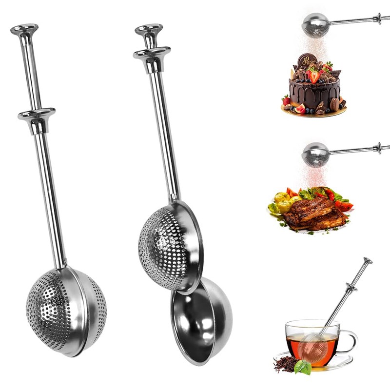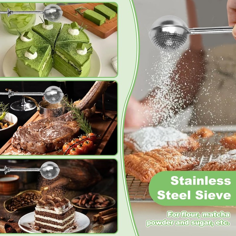 - 【HIGH PRECISION PORES, DENSE | COMPATIBLE WITH FINE POWDER & LOOSE TEA】Stainless steel infuser features precise and even holes: it completely retains loose tea particles during steeping, and sieves fine powder evenly. Matcha, flour and powdered sugar can flow through without lumps or splashes. This strainer is an essential utensil for cooking and tea.