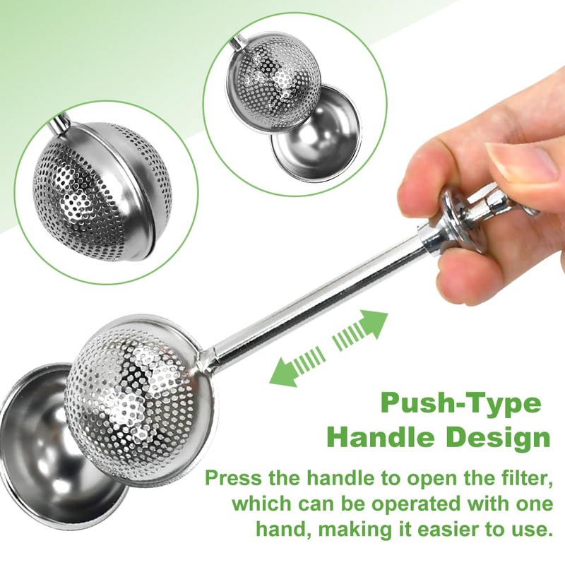 - Snap-on / Removable | Convenient for Brewing and Cleaning: The push button handle of the tea strainer allows opening and closing with one hand, leaving the other hand free for other tasks. This makes pouring and cleaning quick and easy. Ideal for office, travel or outdoor use. This filter makes the tea ritual a simple and elegant experience.
