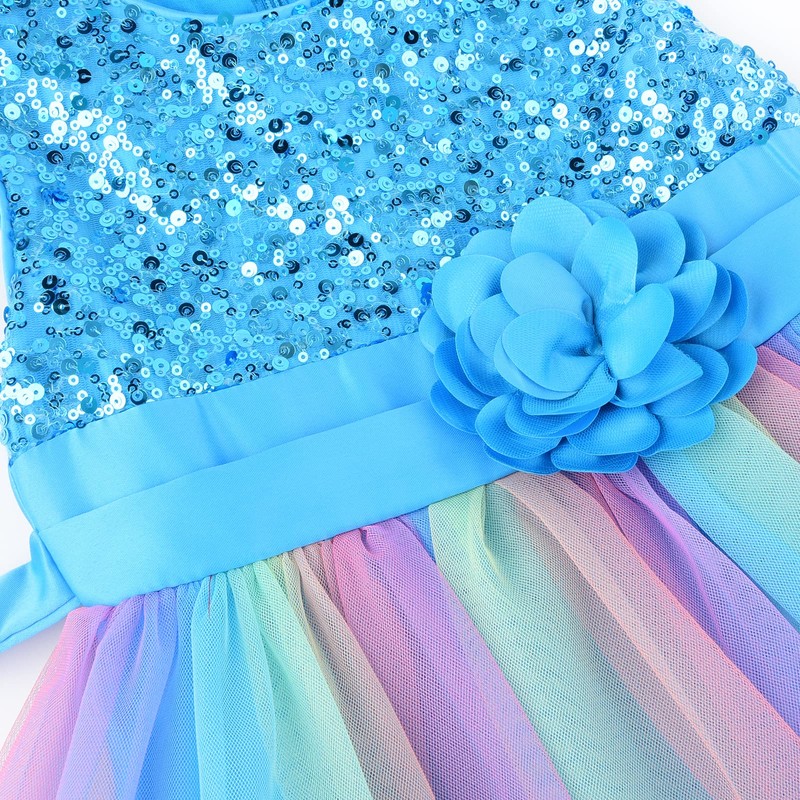 Uhnice Little Girl's Sequin Sleeveless Mesh Rainbow Dress for Wedding Party (3 Years, Blue)