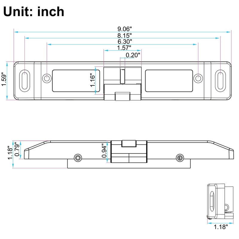Faceplate Size (LxW): 230x40.5mm [9-1/16" x 1-19/32"]