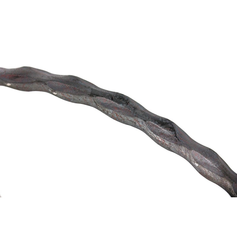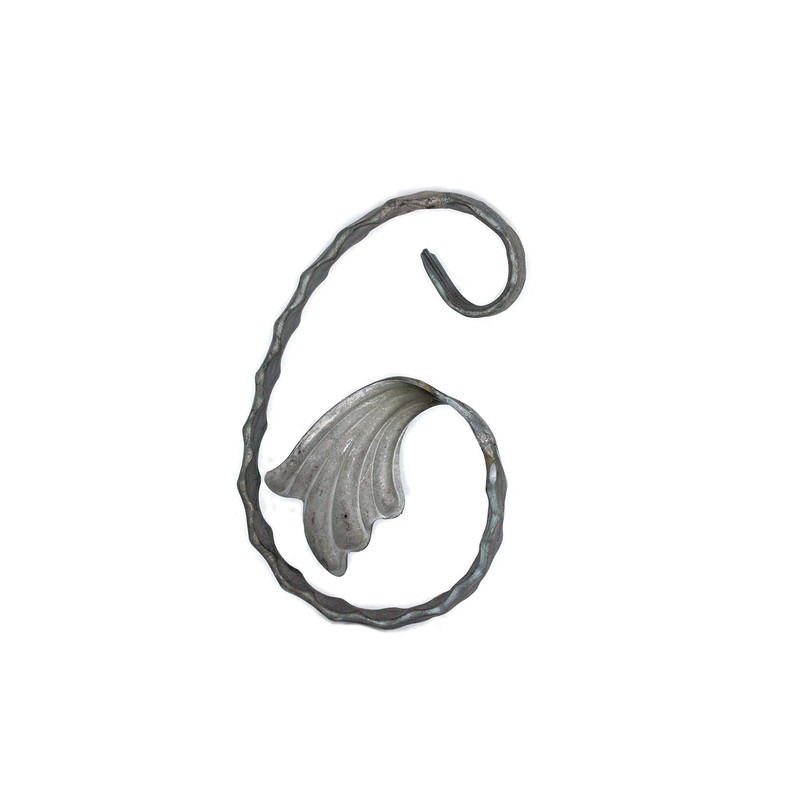 - This beautiful, solid decorative element is forged from 12 x 6 mm flat iron, has the dimensions: H: 150 mm, L: 100 mm and a weight of 200 g, the edges are hammered. The wrought iron ornament has an untreated, bare surface.