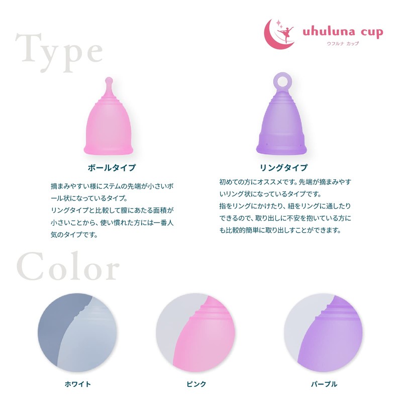 Uhuluna Cup ウフルナカップ【ボールタイプ/L/Bライトブルー】収納ポーチ付 月経カップ 柔らかい 快適 大容量 中級者以上向け 生理カップ 経血カップ 生理用品